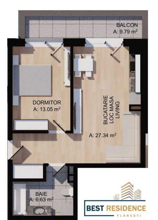 Living+Bucătărie+Loc masă 27.34mp