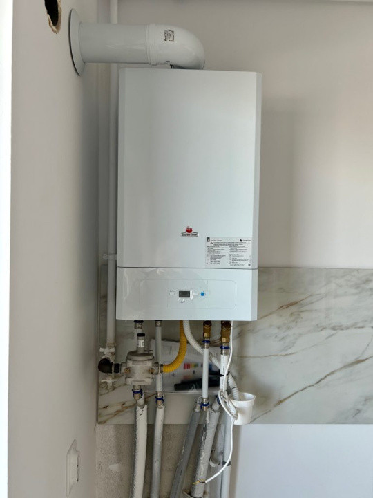 Apartamentul beneficiaza de tamplarie cu profil format din 3 foi de sticla si 5 camere BARIER REHAU, incalzire in pardoseala cu centrala proprie SAUNIER DUVAL, gresie si faianta CESAROM / import, usa de exterior antiefractie MEGA DOORS, usi de interior albe PORTA DOORS, instalatii electrice cu prize si intrerupatoare, instalatii sanitare trase la pozitie si obiecte sanitare, parchet EGGER, lift.