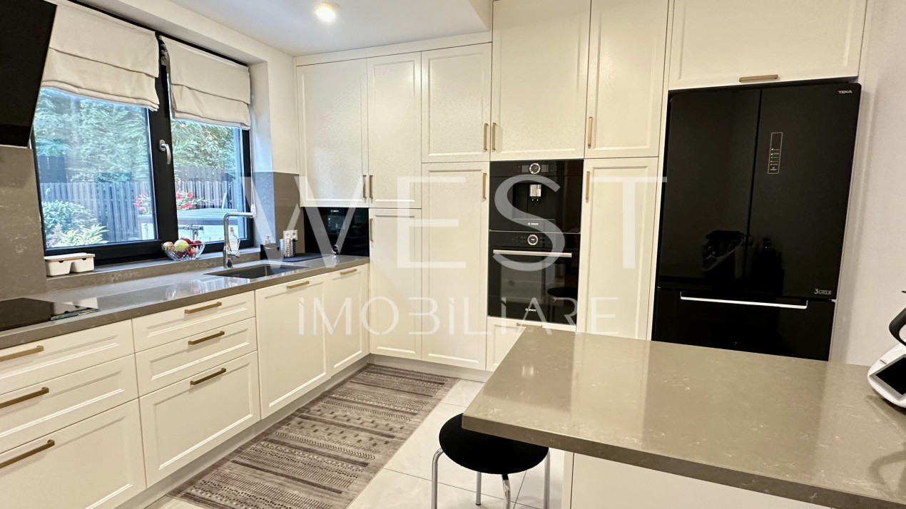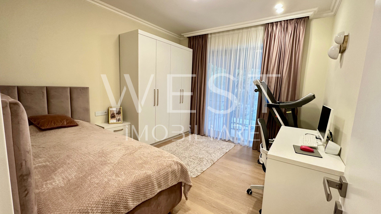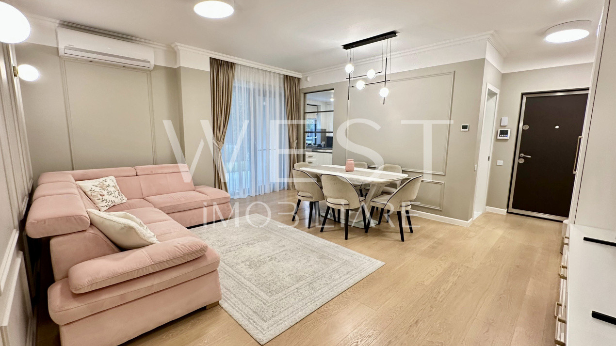 Apartamentul are suprafață utila de 75mp + grădina proprie cu C.F. de aproximativ 90mp , este compartimentat modern prin living cu bucătărie open-space , doua dormitoare , hol , doua bai și se preda complet finisat cu materiale de înaltă calitate și mobilat modern cu mobilier premium precum se poate vedea în imagini!