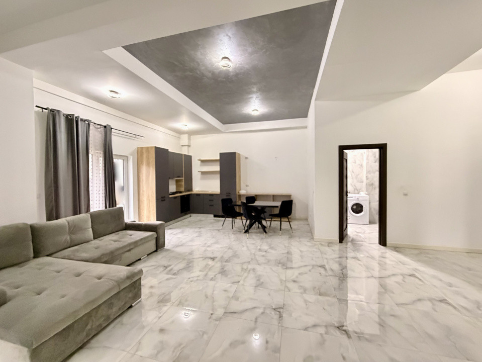 Suprafata utila a apartamentului este de 75mp util + CURTE in suprafata totala de aproximativ 30mp , cu tavane inalte de aproximativ 3m , este compartimentat modern prin living cu bucătărie open-space , doua dormitoare , baie si hol! Se preda complet finisat modern , cu parchet melaminat de trafic intens , baie amenajata cu placi ceramice , utilata cu obiecte sanitare și mobilat MODERN la cheie , dupa cum se poate vedea din imagini!