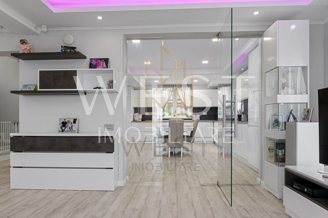 Vila este ultra-finisata si mobilata la comanda, din MDF, accentuand perfect intreaga functionabilitate a spatiului locativ.