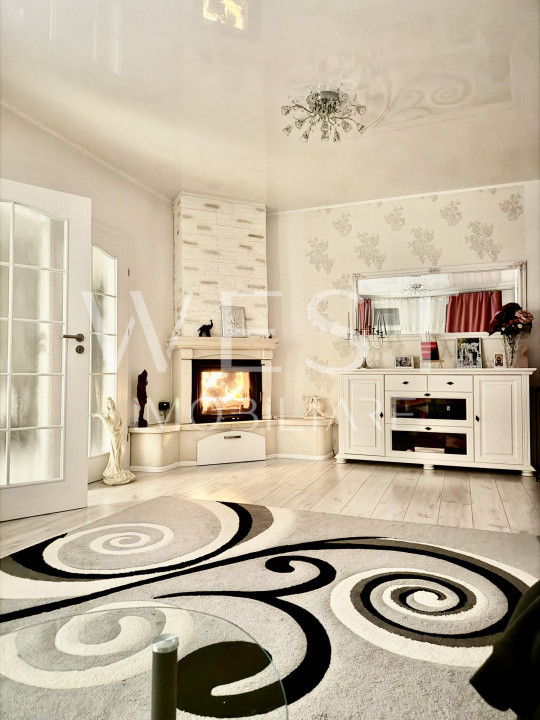 Casa beneficiază de dublă încălzire, având atât centrală pe gaz, cât și șemineu pe lemne cuplat la toate caloriferele, comutarea realizându-se automat.
