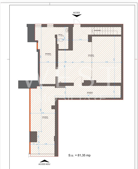 Spatiul are o suprafata utila totala de aproximativ 81,5 Mp si beneficiaza de 2 accese, ceea ce permite o flexibilitate foarte buna de utilizare.